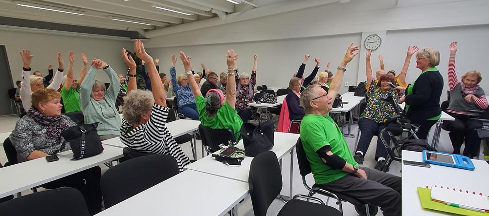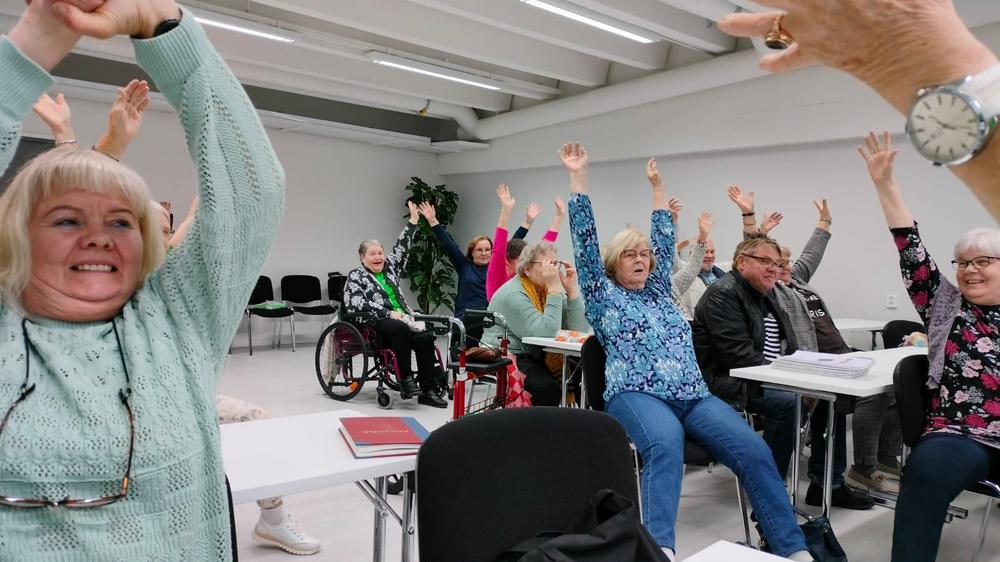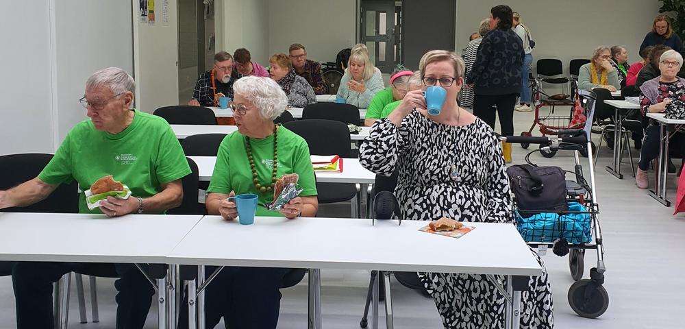 Aivoliiton Satakunnan avh-yhdistys toi joukon raumalaisia ja porilaisia jäseniään vierailulle meille Turkuun 28.9. Iltapäivävierailun aikana ehdimme kahvittelun lisäksi tutustua toistemme toimintaan, ja suorittaa hauskan tuolijumpan, jossa jumppaaja vaihtoi lennossa roolia Matti Nykäsestä meritähdeksi. Viriteltiinpä päivän aikana myös tulevaa yhteistyötä vaikkapa yhdistystemme yhteisen laivaristeilyn merkeissä. Aika näyttää, mitä tuleman pitää! Ohessa kuvia hyväntuulisista jumppaajista, joille myös munkkikahvit maistuivat. Kuvissaolevilta henkilöiltä on saatu lupa kuvien julkaisemiseen kotisivuillamme.