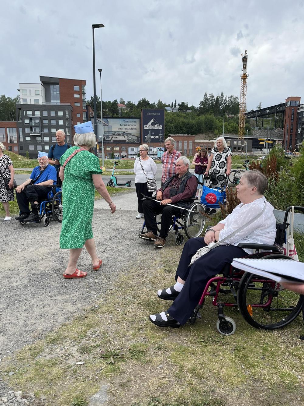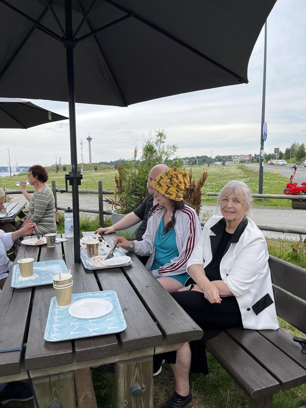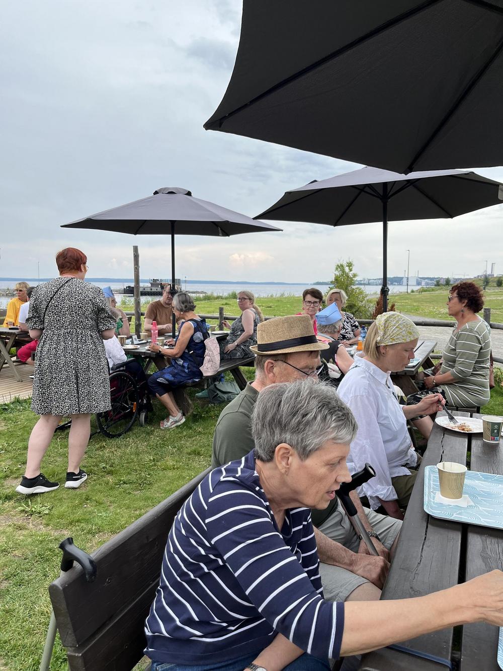 Kävimme iloisella porukalla viettämässä helteistä heinäkuun päivää Pirkanmaan yhdistyksen väen kanssa. Matkaan lähdettiin vähän hitaasti, kun bussistamme rikkoutui hissinosturin sähköistys. Kuljettaja auttoi käsipelillä pyörätuolit autoon. Siinä sai kuljettaja hyötyliikuntansa matkapäivälle! Perillä vika saatiin korjattua ja takaisin lähtiessä kuljettaja pääsi hurjasti helpommalla.