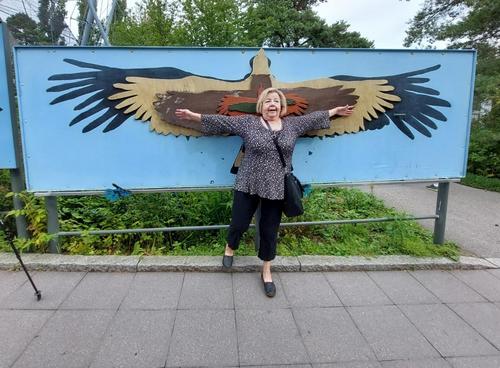 Meidän Ritva kokeili, miltä tuntuisi liitää huuhkajana - siipiväli nimittäin olisi juuri sama!