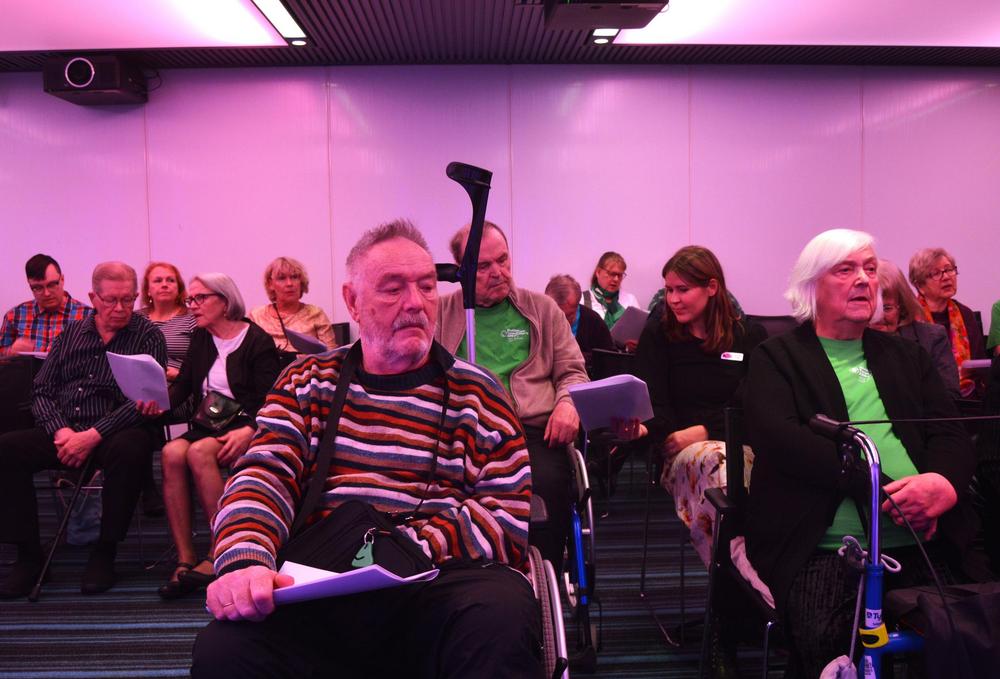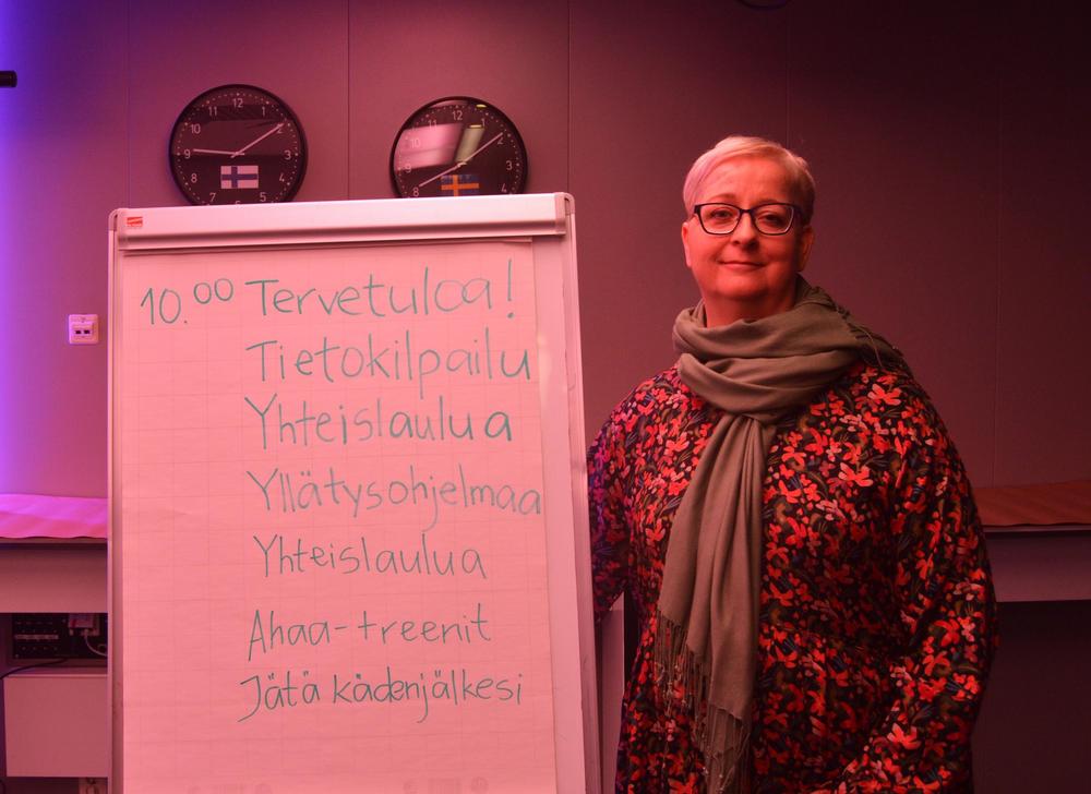Tiistaipäivän juhlassa muistelimme yhdessä kuluneiden vuosien tapahtumia, retkiä, harrastuksia ja hauskoja sattumia. Ahaa-aivotreeneissä pistettiin harmaat aivosolut liikkeelle ja taisipa vähän nauruhermojakin kutkutella, kun hallitus ampaisi areenalle tanssiesityksellä "Mika tanssii tätien kanssa". Tietenkin myös lauloimme oman haitaristimme Keijon säestyksellä.