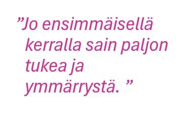 Ryhmässä jokainen voi tarjota tukea ja saada sitä toisilta. Voit valita itse, minkä verran tilanteestasi kerrot toisille: voit olla toisinaan aktiivinen ja joskus seurata keskustelua sivusta. Saat kuitenkin parhaan hyödyn ryhmästä, jos uskallat olla avoin ja tuoda esille omia ajatuksiasi.